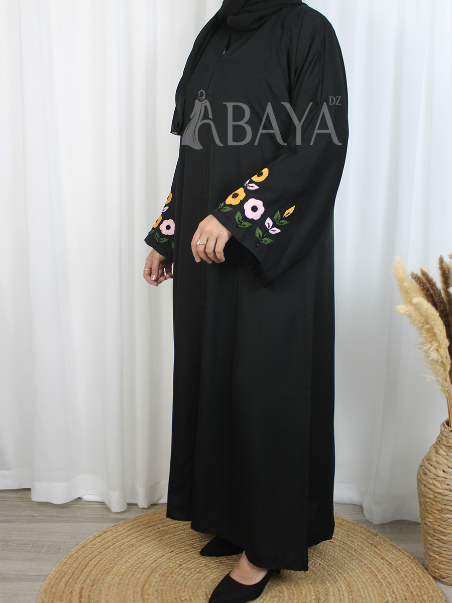 Sublimez votre style avec notre Abaya de Dubaï, ornée de magnifiques détails perlés en forme de fleurs sur les manches, ajoutant une touche de raffinement et de charme à votre allure !