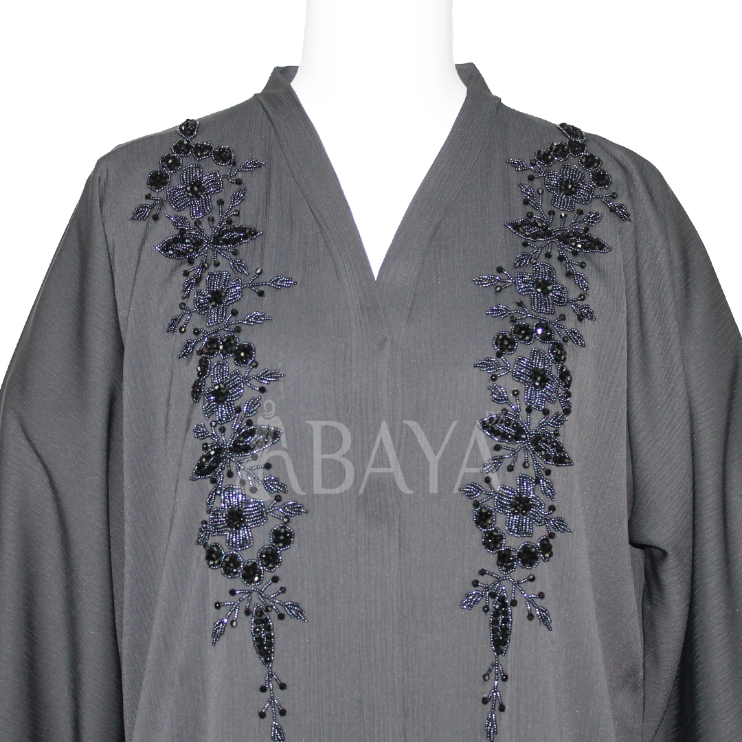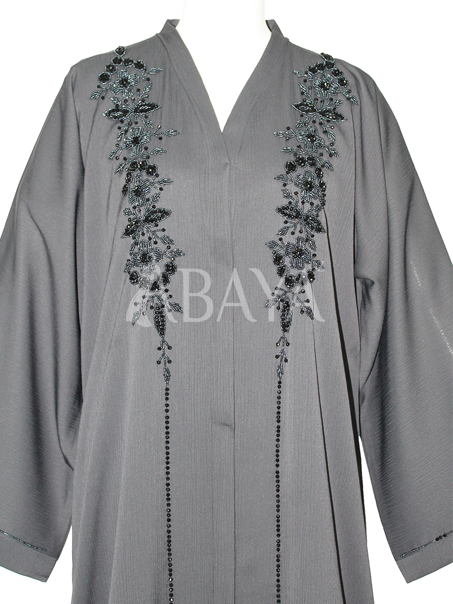 Abaya Dubai perlée chic en gris souris