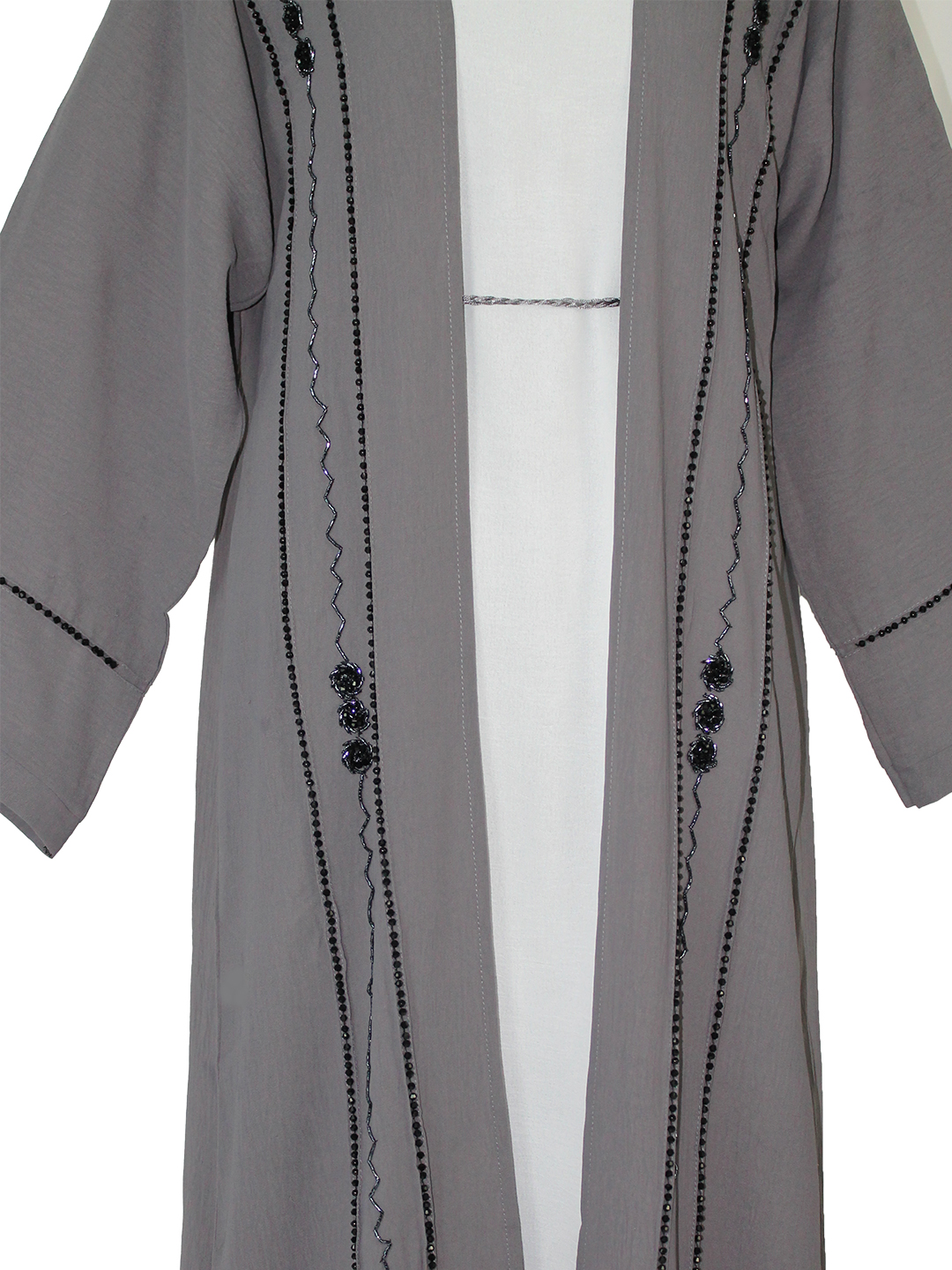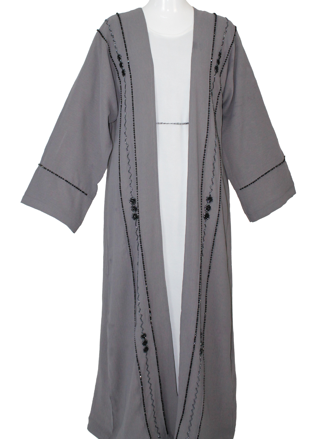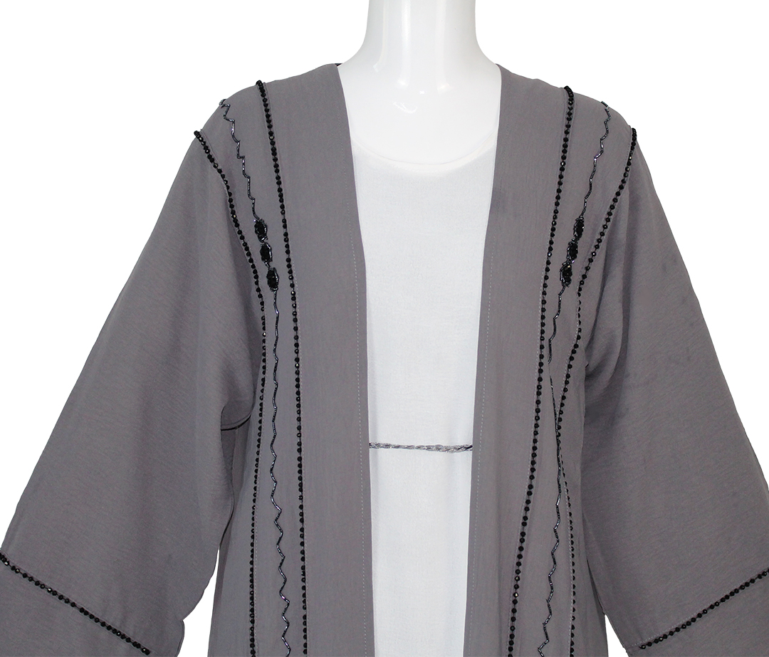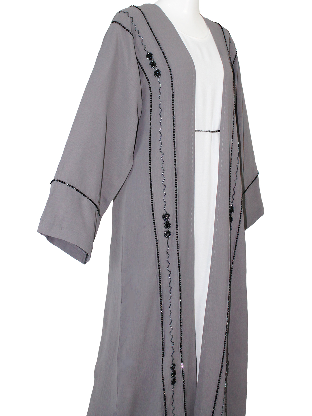 Les motifs perlés ajoutent une touche raffinée à votre tenue. Le tissu confectionné aux Émirats vous ira à ravir, il est léger et son retombé est fluide.