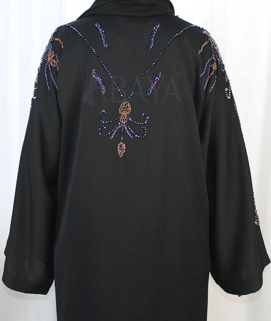 - Abaya noire perlée, luxe en tissu ZOOM.