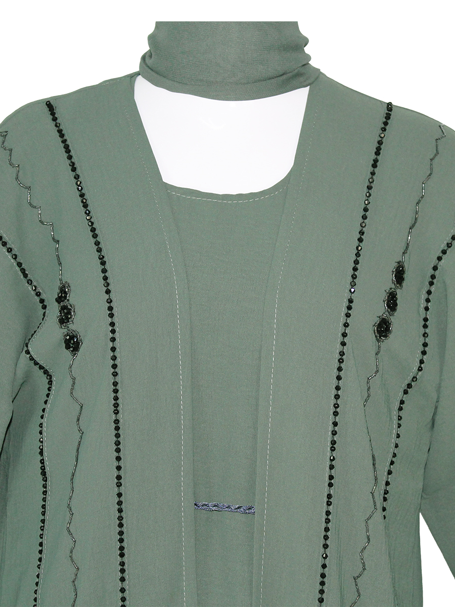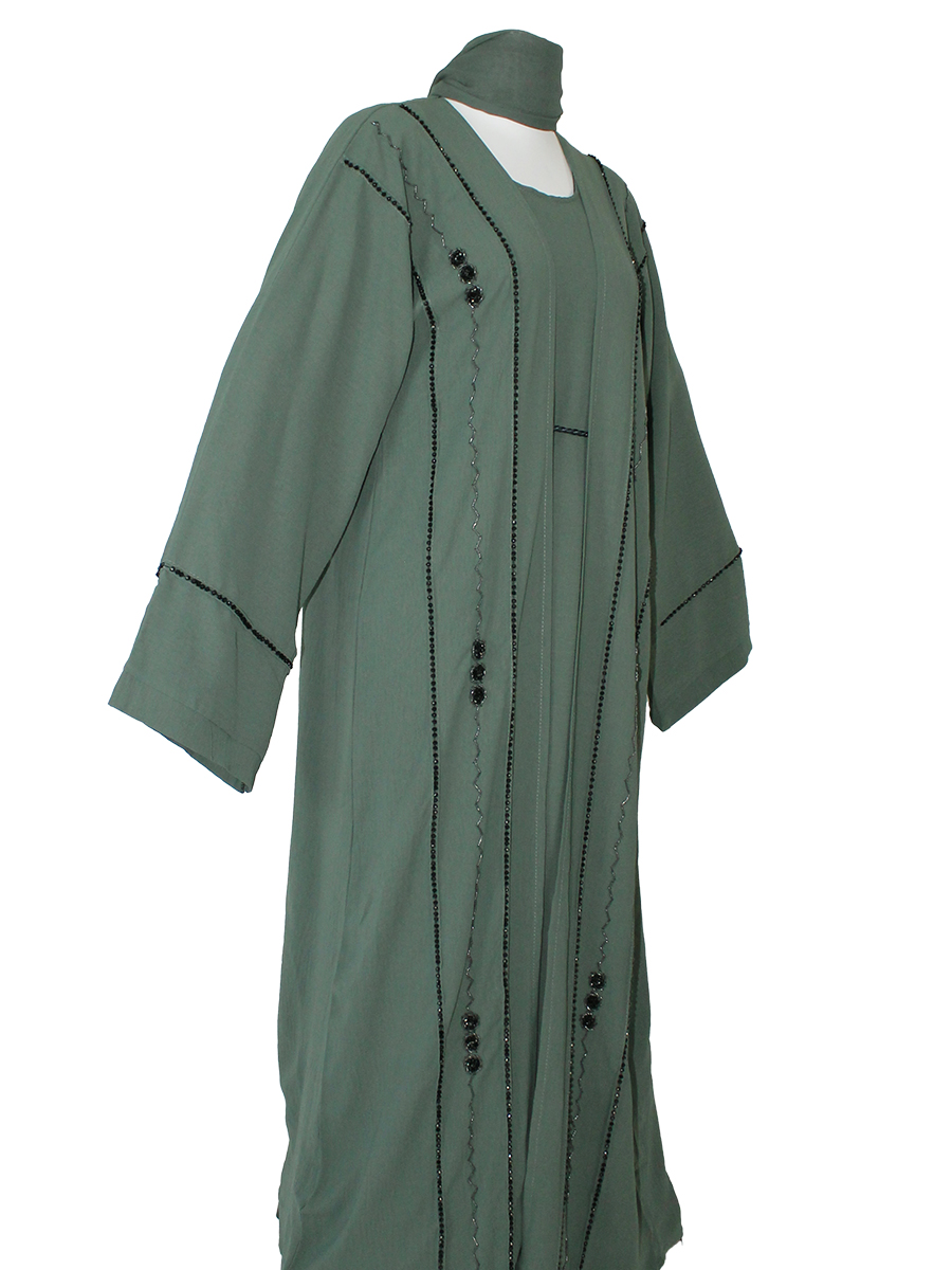 Kimono ensemble en deux pièces en vert avec une sous Abaya en vert aussi.